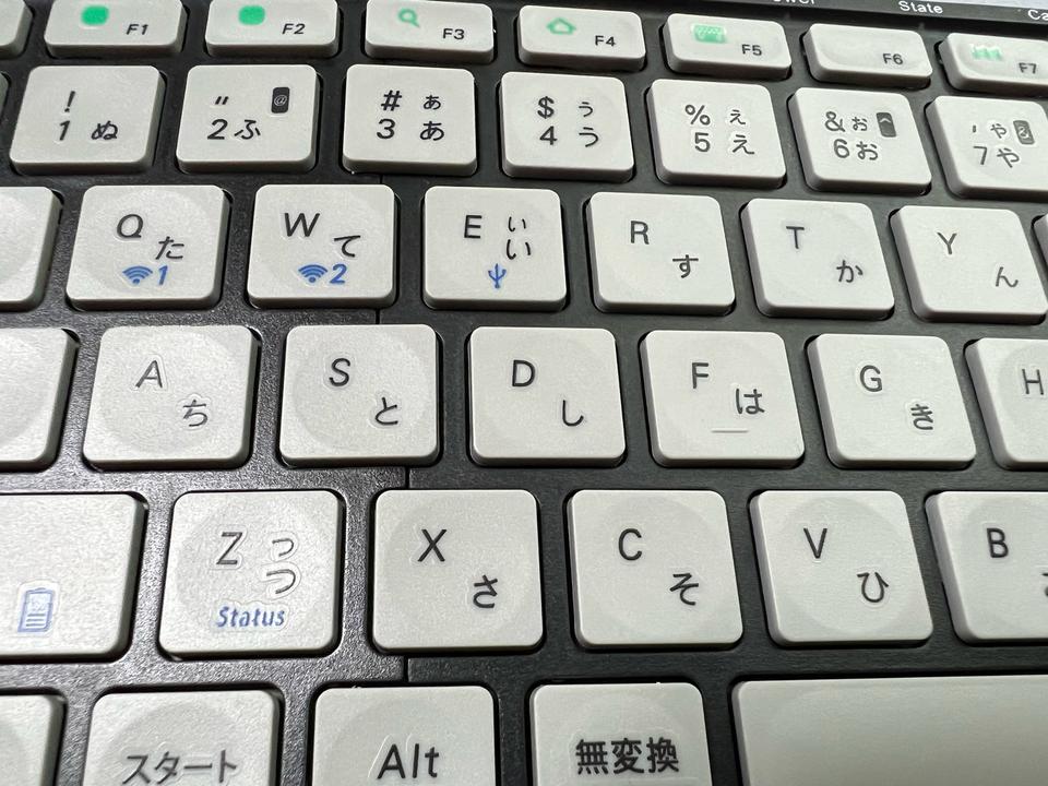 そのため一部の記号などは、黒背景に白抜きで刻印されているUS配列時のキーを使って入力する必要があります。