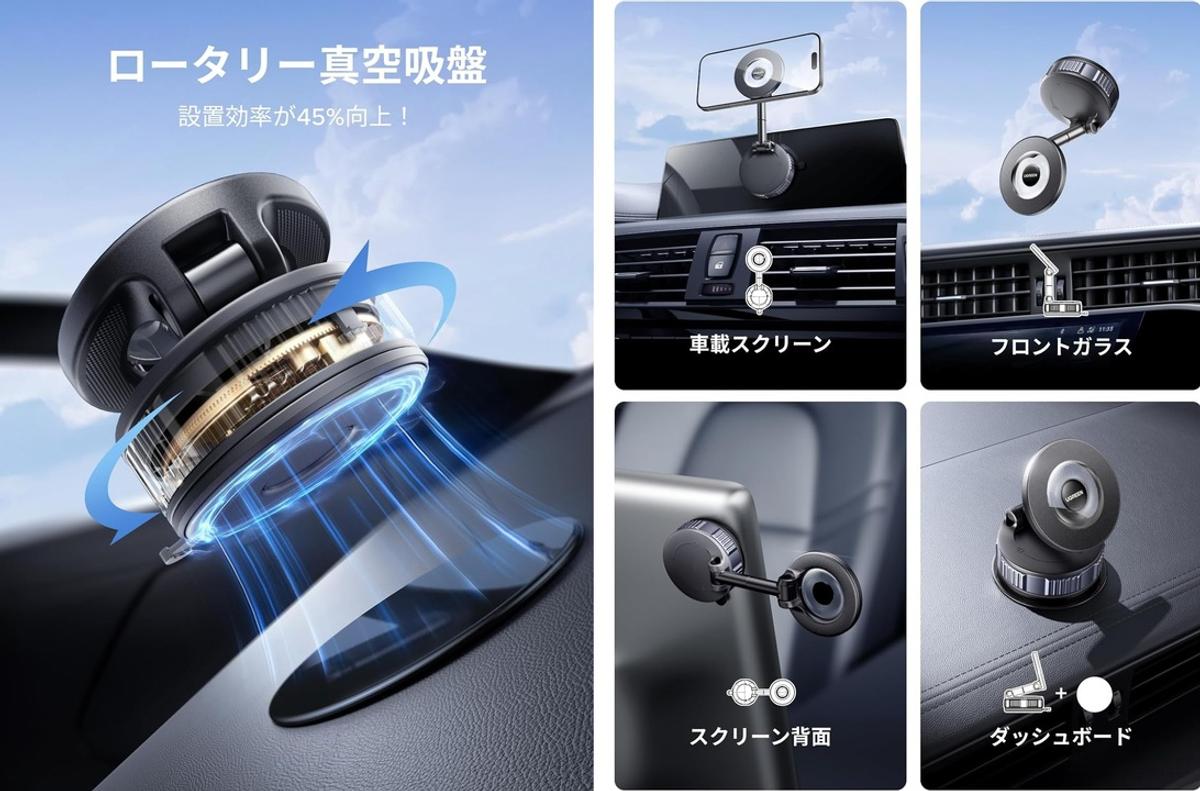 10月30日に発売したUGREEN(ユーグリーン)の「MagSafe 車載スマホホルダー」が、まさに理想的アイテムです。