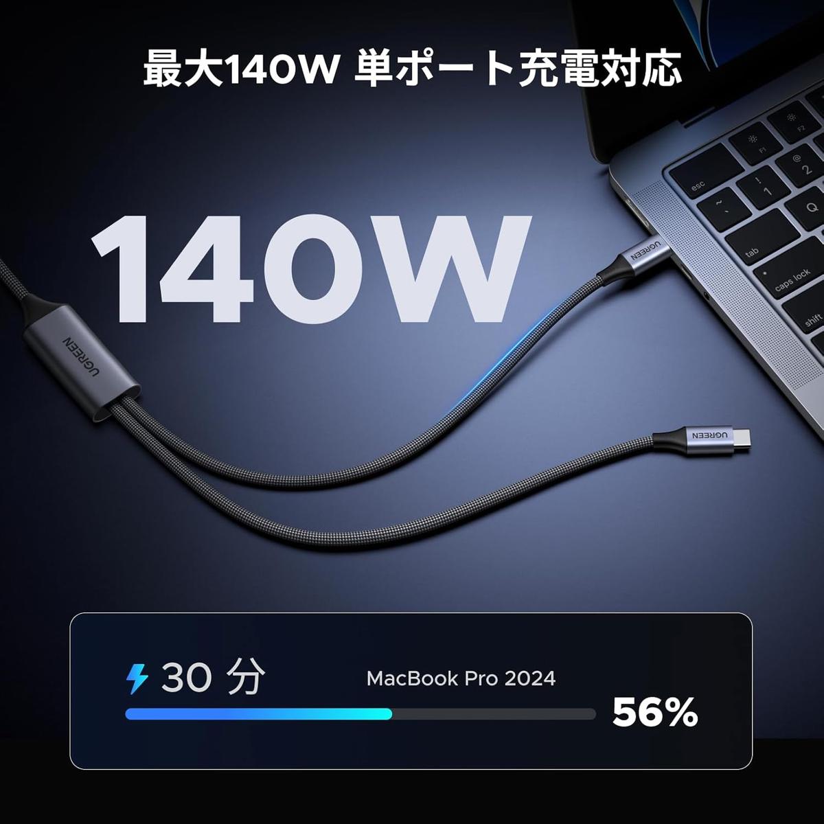 現在、USB-C機器を同時に2台充電できる2 in 1仕様が特長のUGREEN(ユーグリーン)の「140W 2in1 USB-C to USB-Cケーブル(1.5M)」がお得に登場しています。