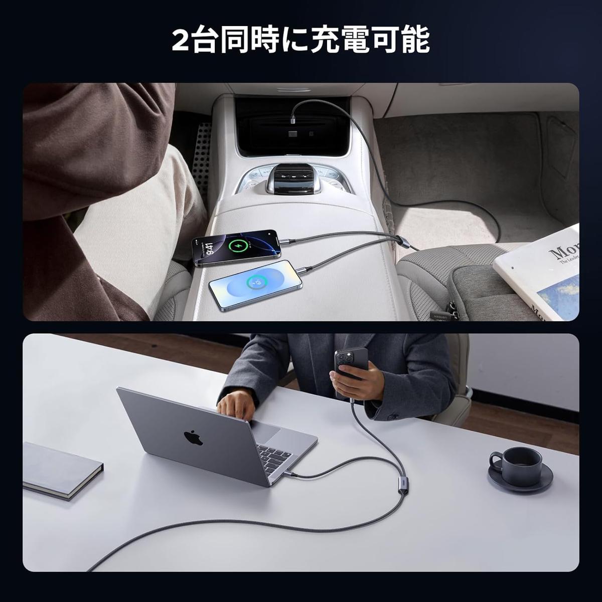 1本で2台同時に高速充電できる、UGREENの「140W 2in1 USB C to USB Cケーブル」が25%オフ!