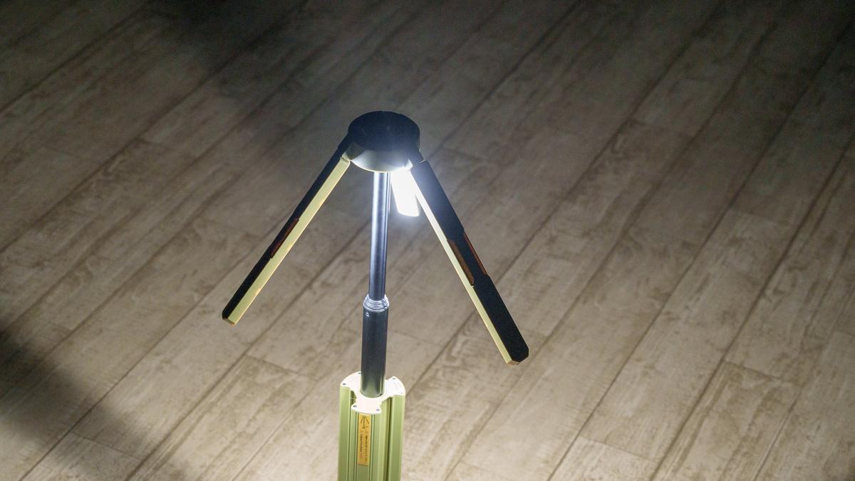 「CL04」は1,000ルーメンのバーライトを3本搭載していて、全点灯すると最大3,000ルーメン。これは、50〜70㎡程度の標準的なキャンプ区画サイト全体を照らせそうな印象です。
