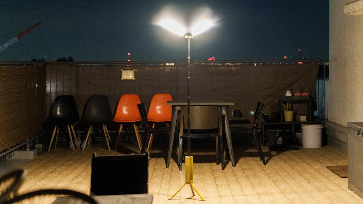 正直、実際に試してみる前から「これ、家でもけっこう便利なんじゃない?」という気配がするライトだったんです。今回は、キャンプ場ではなく自宅のルーフバルコニーで実際に使ってみました。
