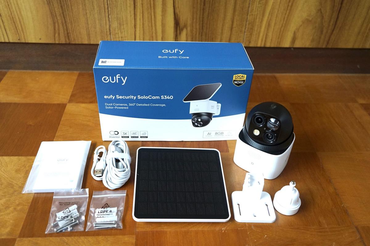 昼夜問わず高画質映像を記録し、水平方向に360°、垂直方向に70°撮影可能な「Eufy SoloCam S340」