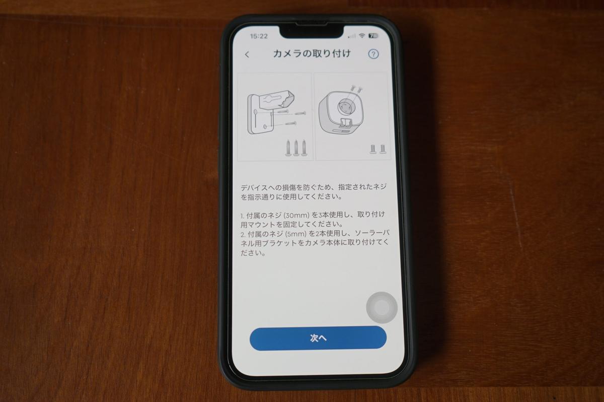 同梱されているクイックスタートガイドにもカメラの取り付け方が書いてありますが、アプリでは日本語で説明されているので便利です。