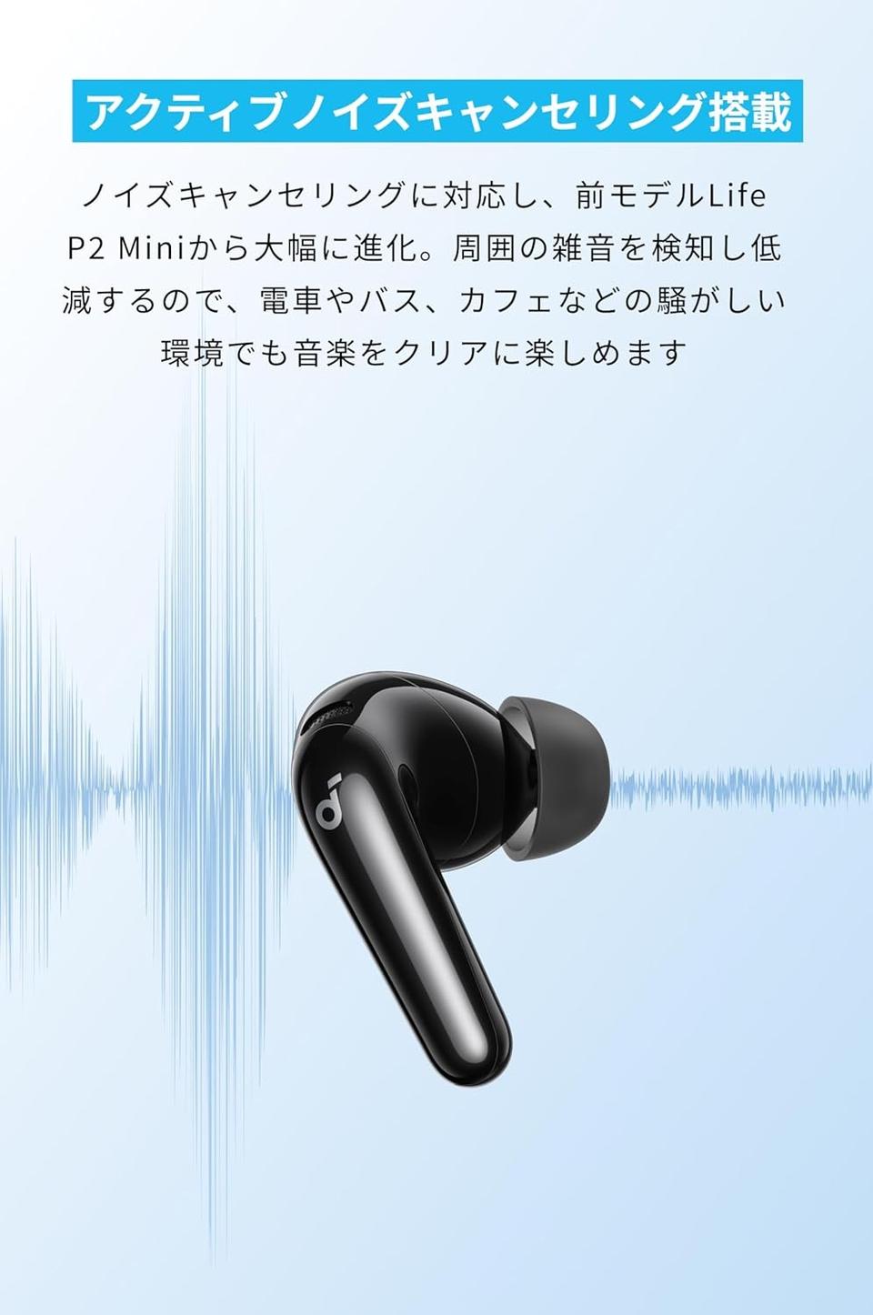 2021年発売の「Soundcore Life P2 Mini」の後継機種にあたるエントリーモデルで、ノイズキャンセリング機能が新搭載されたうえ、いろいろと順当進化。それでいて5,990円という高コスパの注目株です。