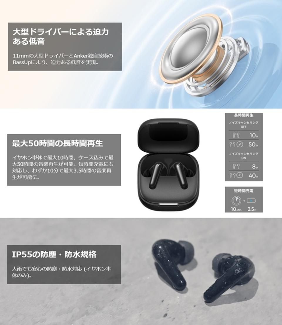 他にも、ドライバーが11mmと大型化したことでより迫力と厚みのある低音を実現。Anker独自技術のBassUp︎と合わせて、豊かなサウンドを再生してくれます。