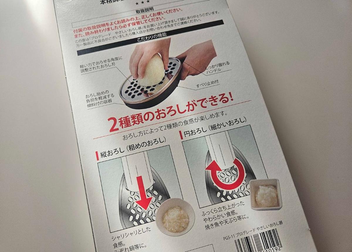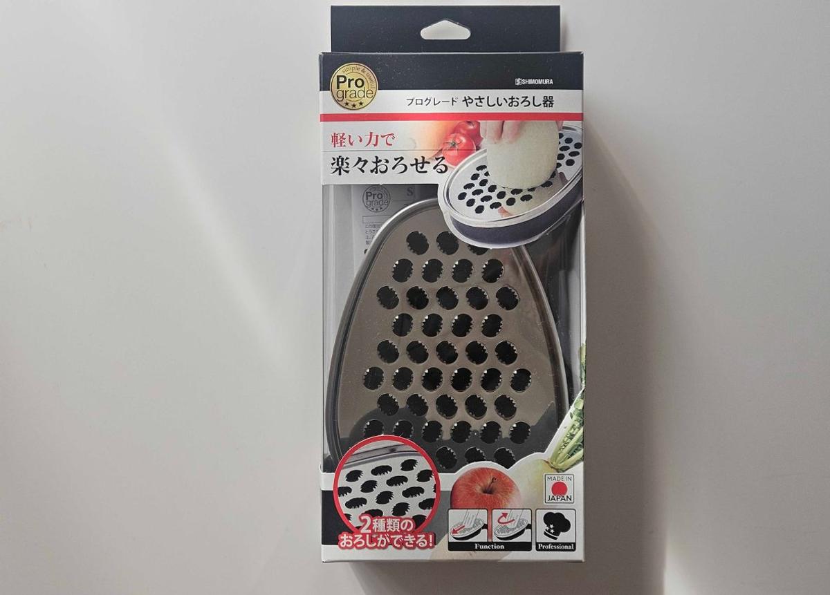 そのなかで、目に留まったのが、下村工業の「やさしいおろし器」です。大きすぎないサイズ感と、怖そうじゃない感じ、「2種類のおろしができる」という点が決め手です。