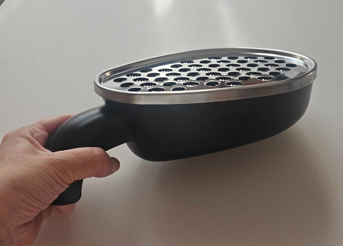 大きなおろし器が多く魅力的でしたが、収納や使い勝手を考えて、できるだけ小ぶりなサイズに。取っ手がついていて安定感もありそうです。