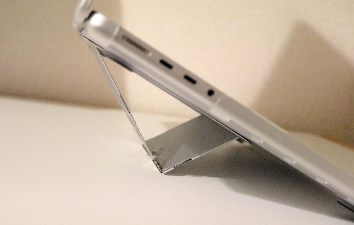 私の場合は、ハードケースもつけてしまっているので、スタンドもくっつけると厚みが増してしまう懸念もありましたが、むしろスタンドがついていないんじゃないかと錯覚するくらい薄くてありがたい。持ち運びのストレスもありません。
