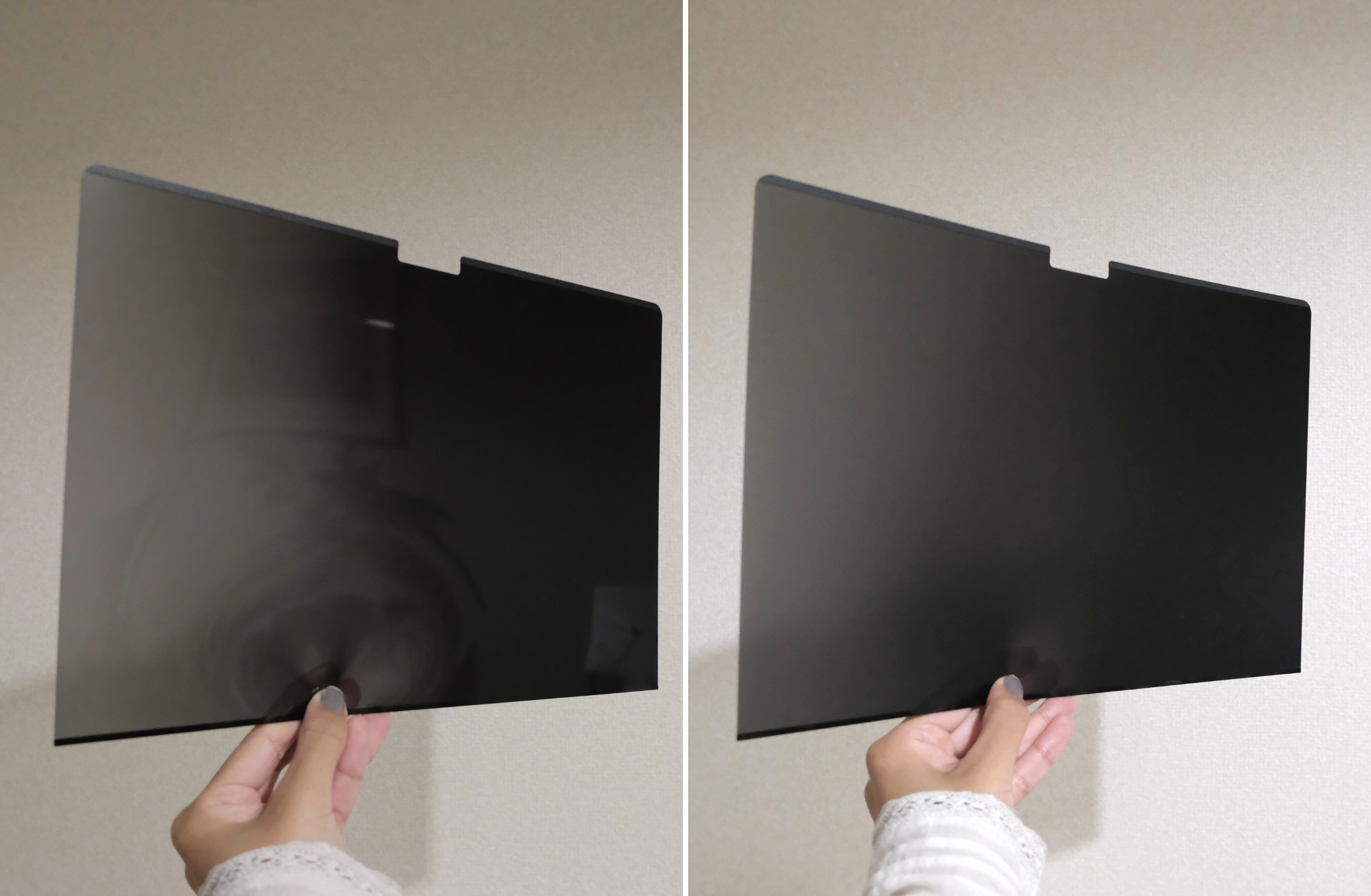しかも、画面は両面使用可能。片面はツルッとしていて鮮明な映像や画像を確認するとき向き。反対の面はマット加工になっていて反射防止の効果が高くなっています。両面ブルーライトを約50%軽減してくれる点もありがたい!