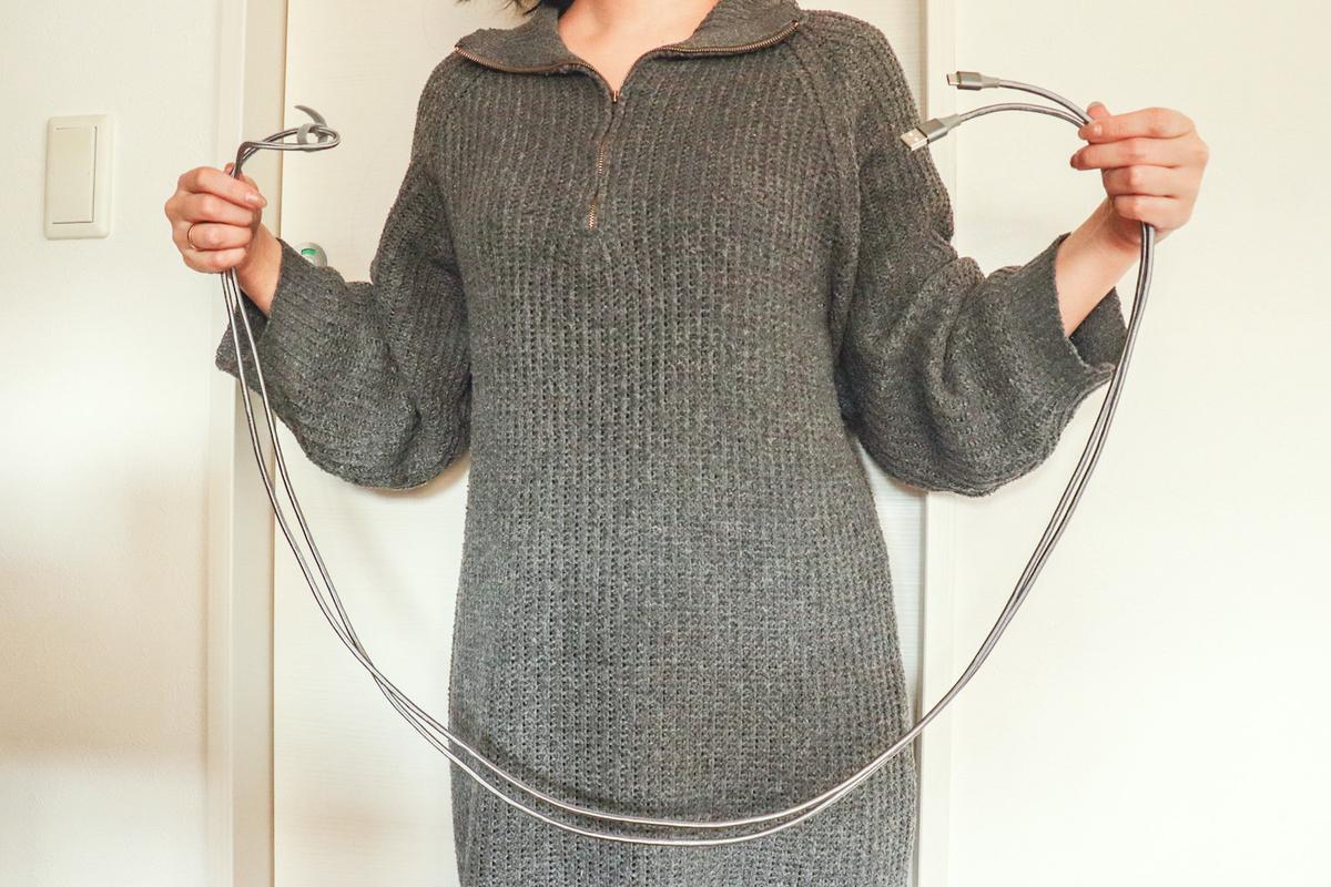 普段持ち歩くケーブルよりも長くて重みはありますが、カバンのスキマに入れておけるので、持ち運びもそこまで気になりませんでした。