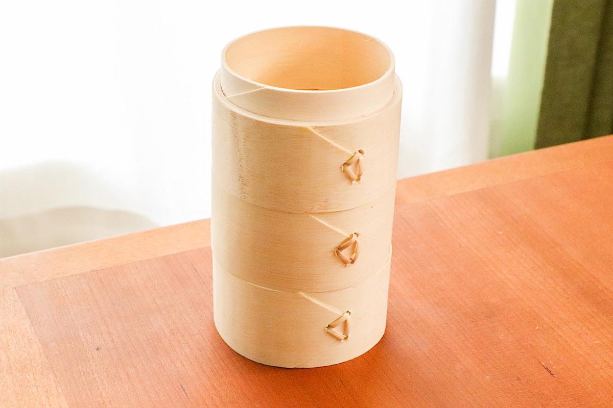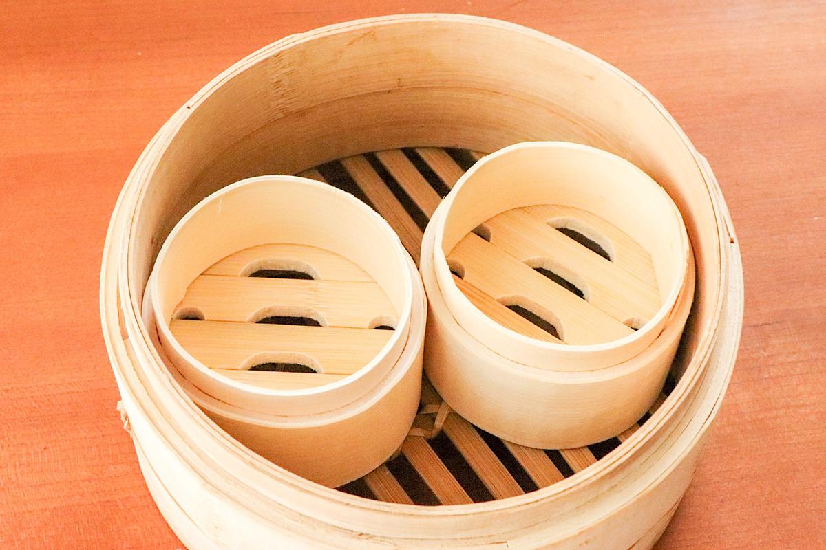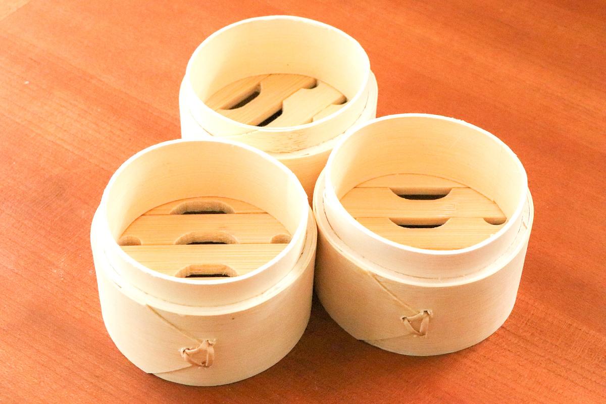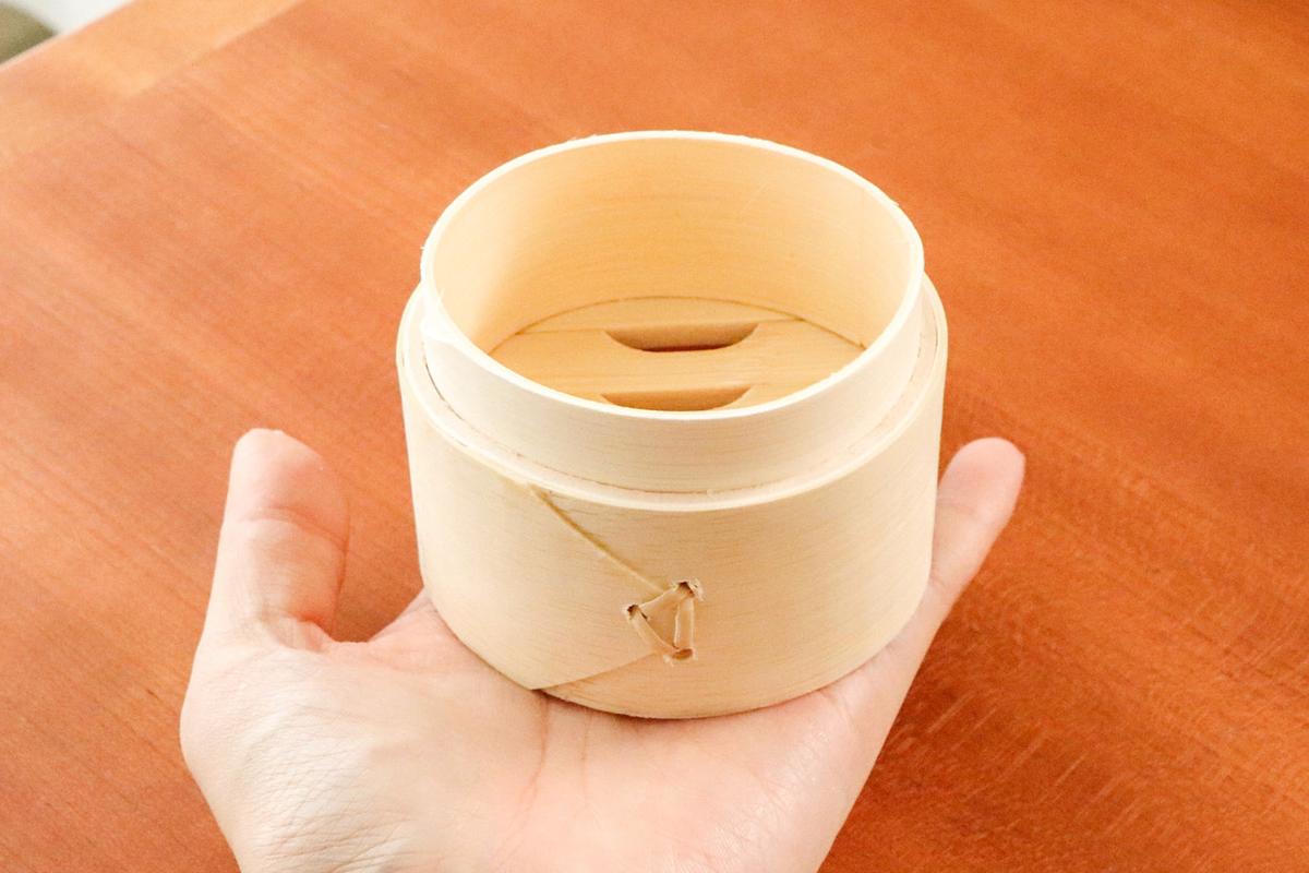 竹製で手のひらサイズのせいろは、まるでミニチュアのよう。