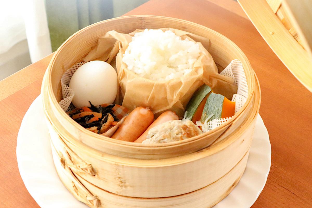 ほかの食材をせいろに入れ、ごはんだけミニセイロに入れておけば、ワンプレートランチとして活躍します。