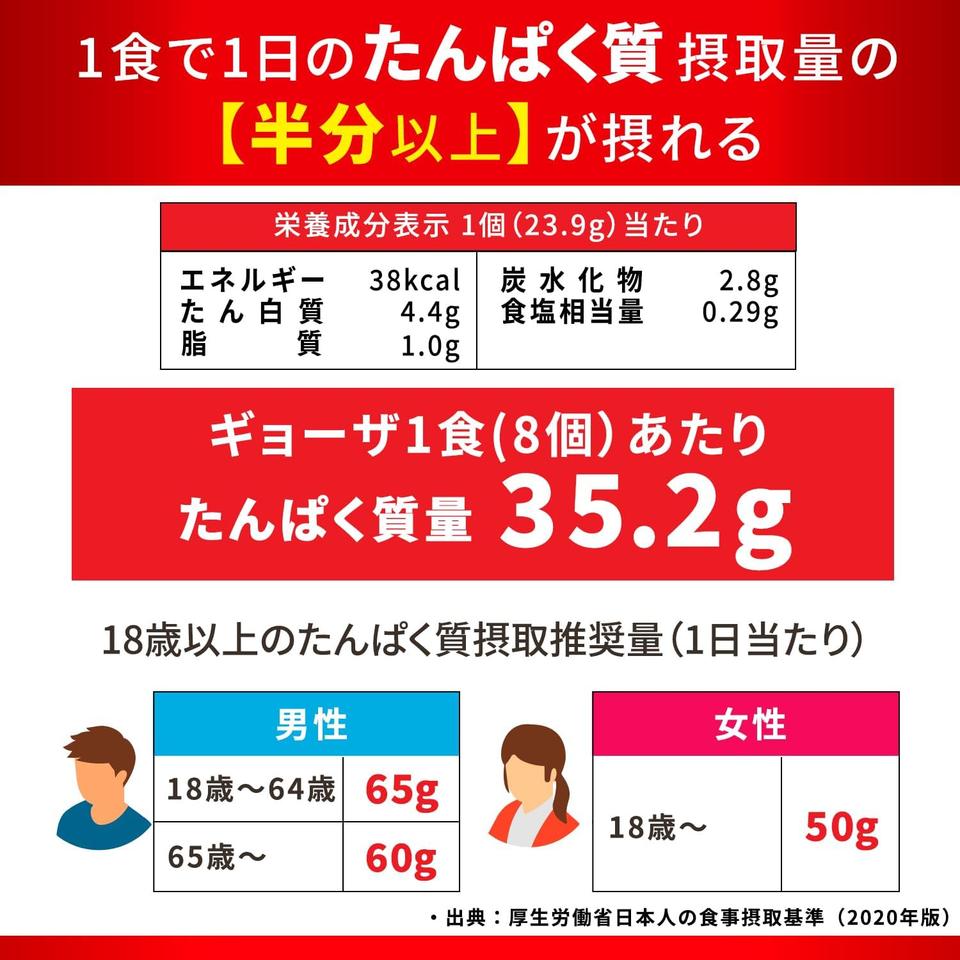 焼き餃子以外にも、水餃子や餃子鍋など幅広いアレンジが可能。高たんぱくメニューを無理なく増やせるため、日常的に栄養管理を行う筋トレ層やダイエッターにとくにおすすめです。