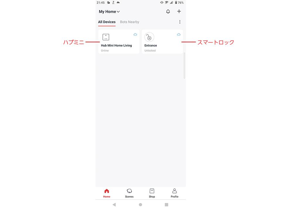 説明書どおりに組み付けて、アプリの設定を完了したら、スマホから鍵の開け締めが可能になります。