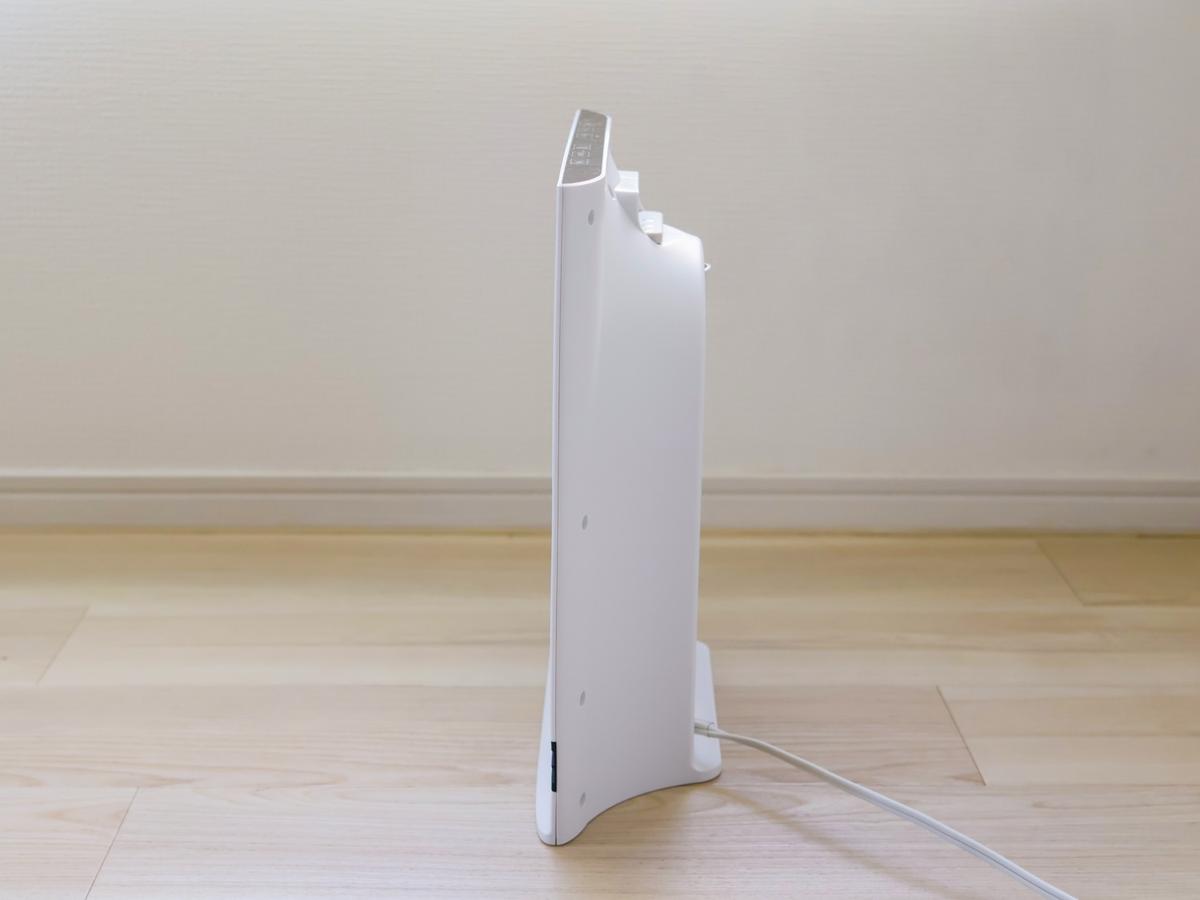 この足元のスペースでできる寒さ対策を探して見つけたのが、超スリムなこのヒーター。