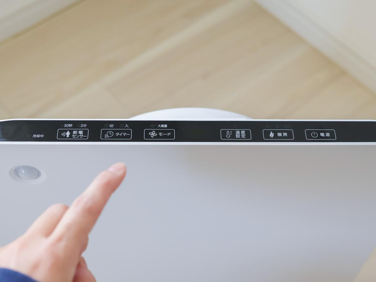モードは、1200Wの最大電力で運転する「大風量暖房運転」のほか、「強」から約5分後に「弱」に切り替わる「節電モード」。18~30度で温度設定も可能です。