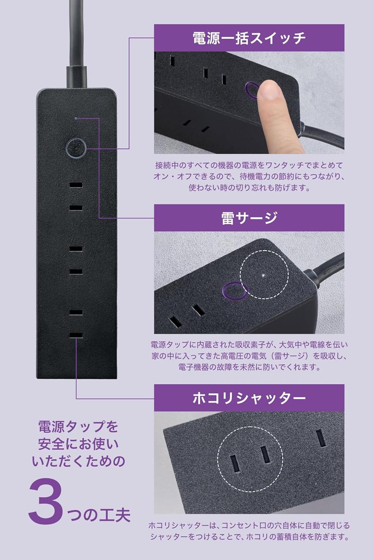 スマホやワイヤレスイヤホン、ノートPCなど毎日使うアイテムをまとめて充電できる電源タップです。