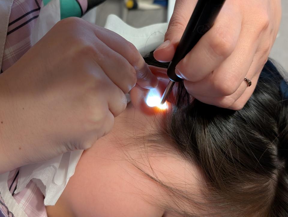 続いては、子どもたちの番。耳アカはあるものの、きれいな白い色をしており、私とは全然違いますね…。