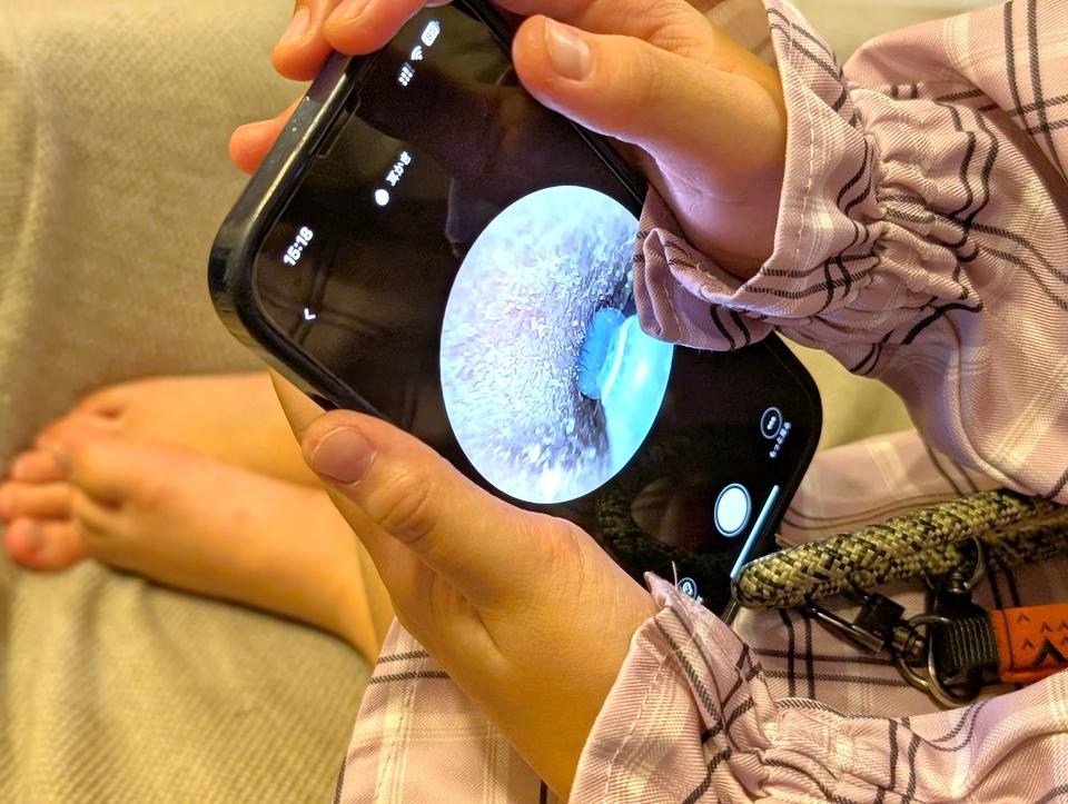 子どもたちも耳かきしてもらいながら、スマホで自分の耳の中の様子を興味深そうに見ていました。