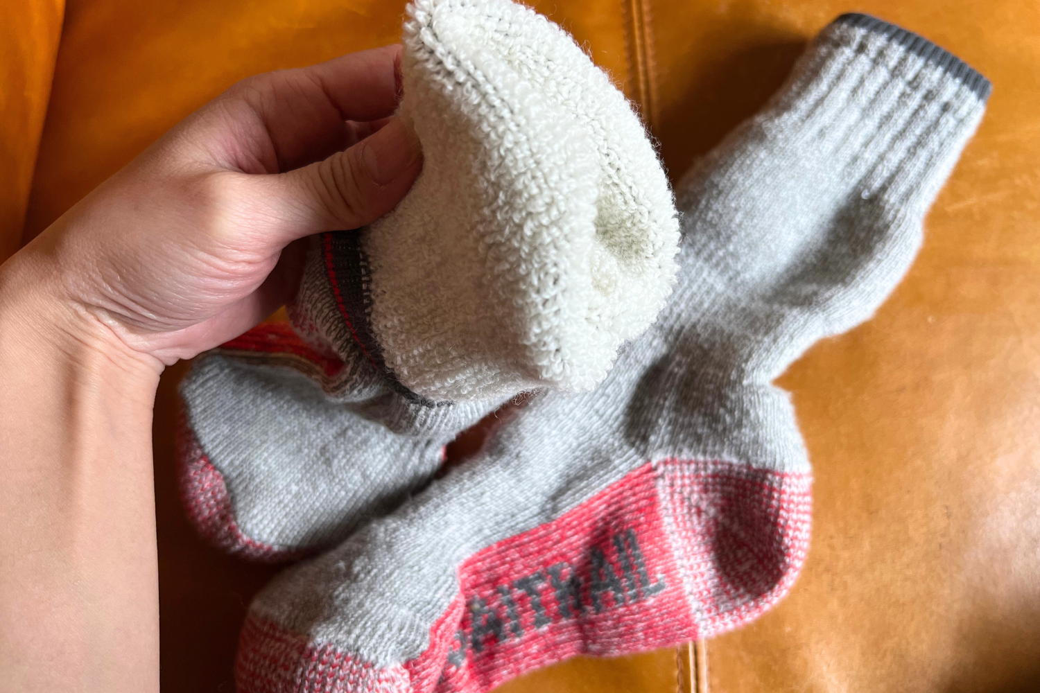 履いてみると本当にあたたかい。厚みがしっかりあり、寒さが増すこれからの季節に履いても十分足元をあたたかく包んでくれそう。