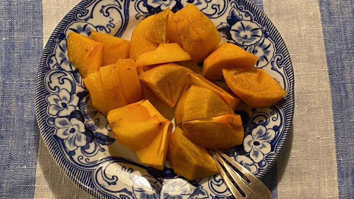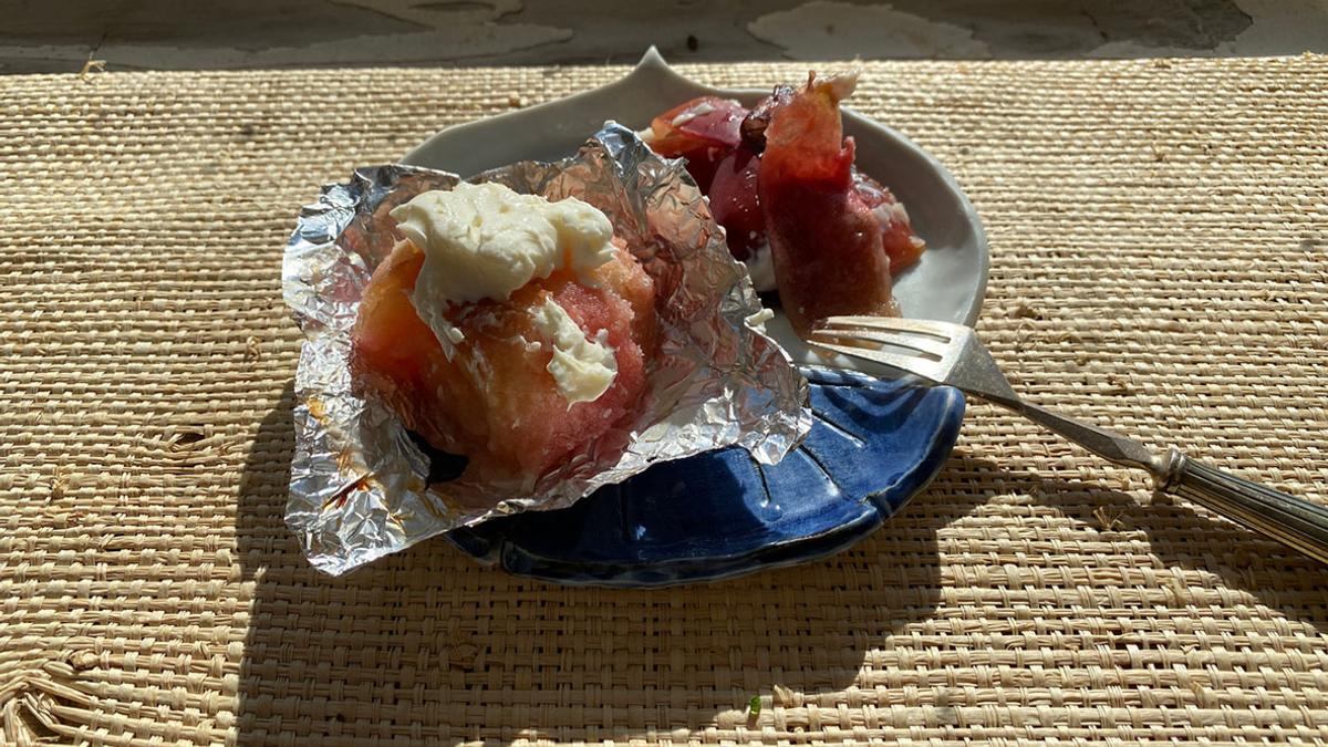 焼き林檎(焼けて皮を剥がれたりんごはこんな感じ。甘酸っぱくて美味しい)。