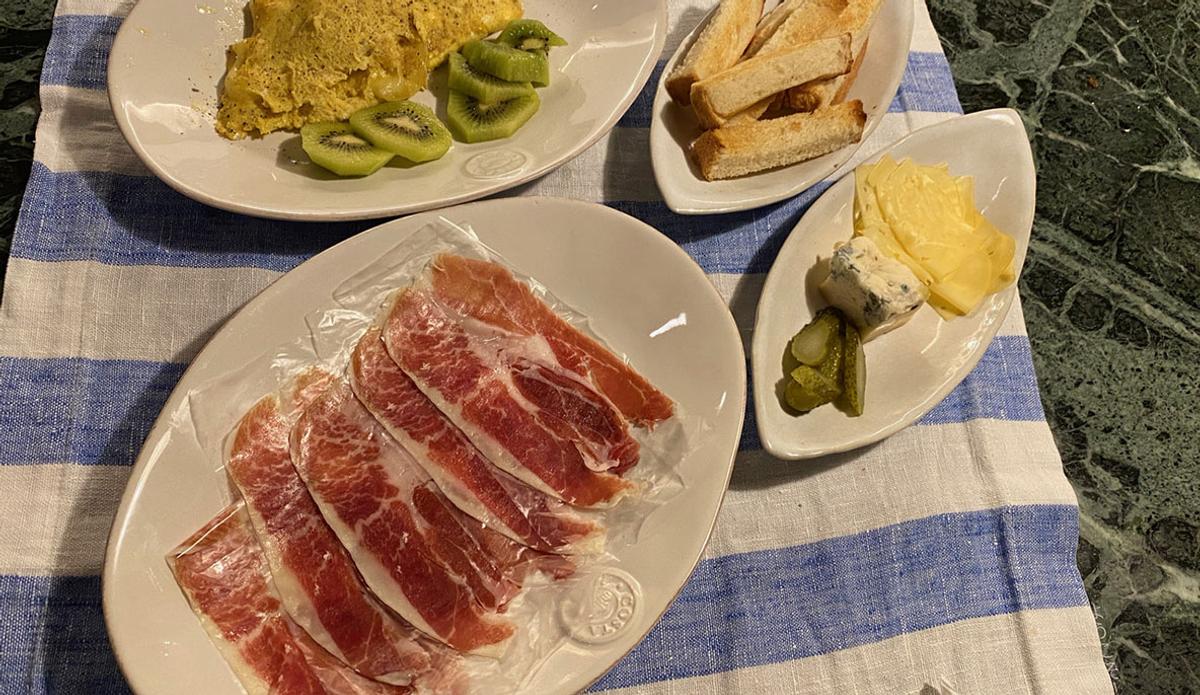 明後日から留守にするので、生ものを食べなくちゃ!と冷蔵庫を覗くと、イベリコハムがこんなに残っていました。Lucky! TORUくんがチーズオムレツにTRY。半世紀以上前、フランス・Dijonの小さなカフェで1/2ずつ食べたことを思い出した。なぜ1/2だったか? それはね、お金がなかったから。美味しかったの~、Dijonのそのチーズオムレツが。チーズ、
