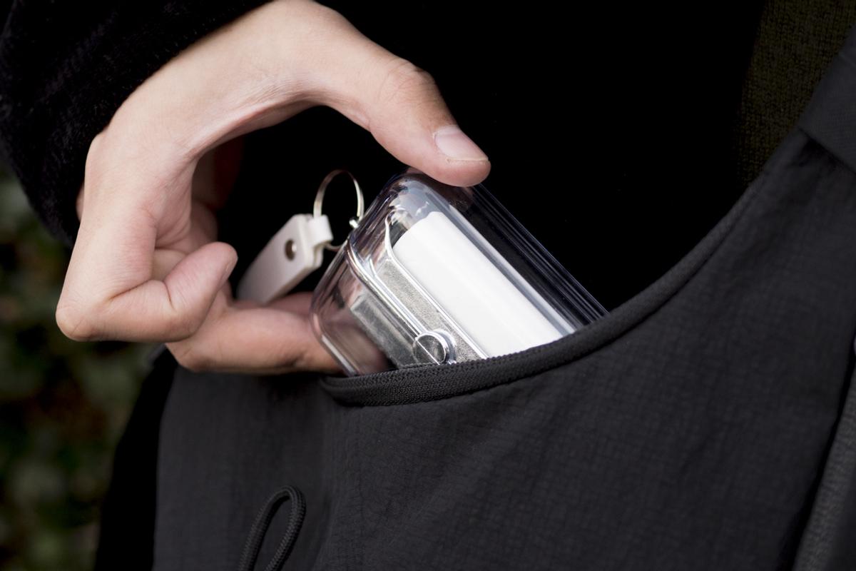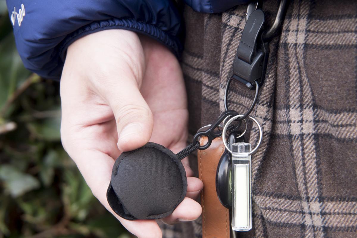 鍵などの普段から持ち歩いているものと一緒に吊るしておけば、外出先でもサッと使える状態に!