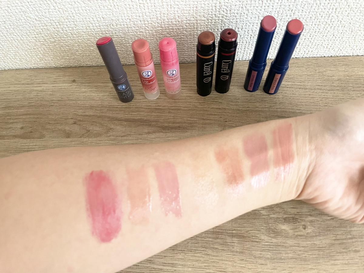 全てのリップクリームを腕に出してみると、結構色が違う!