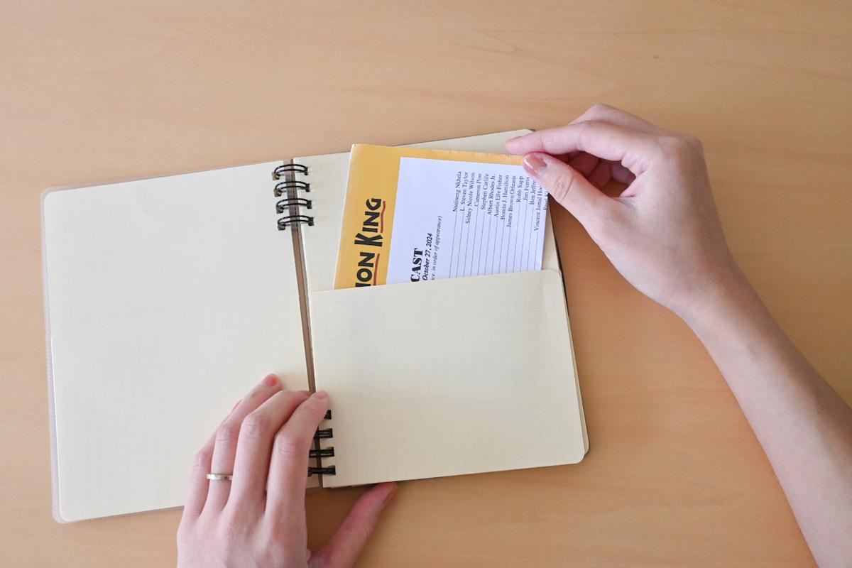 見た目は見慣れたロルバーンですが、表紙がお気に入りのチケットやカードが挟めるクリアポケットになっていたり、中のページにもポケットがついていたりと、たしかにちょっぴり特別な仕様になっています。