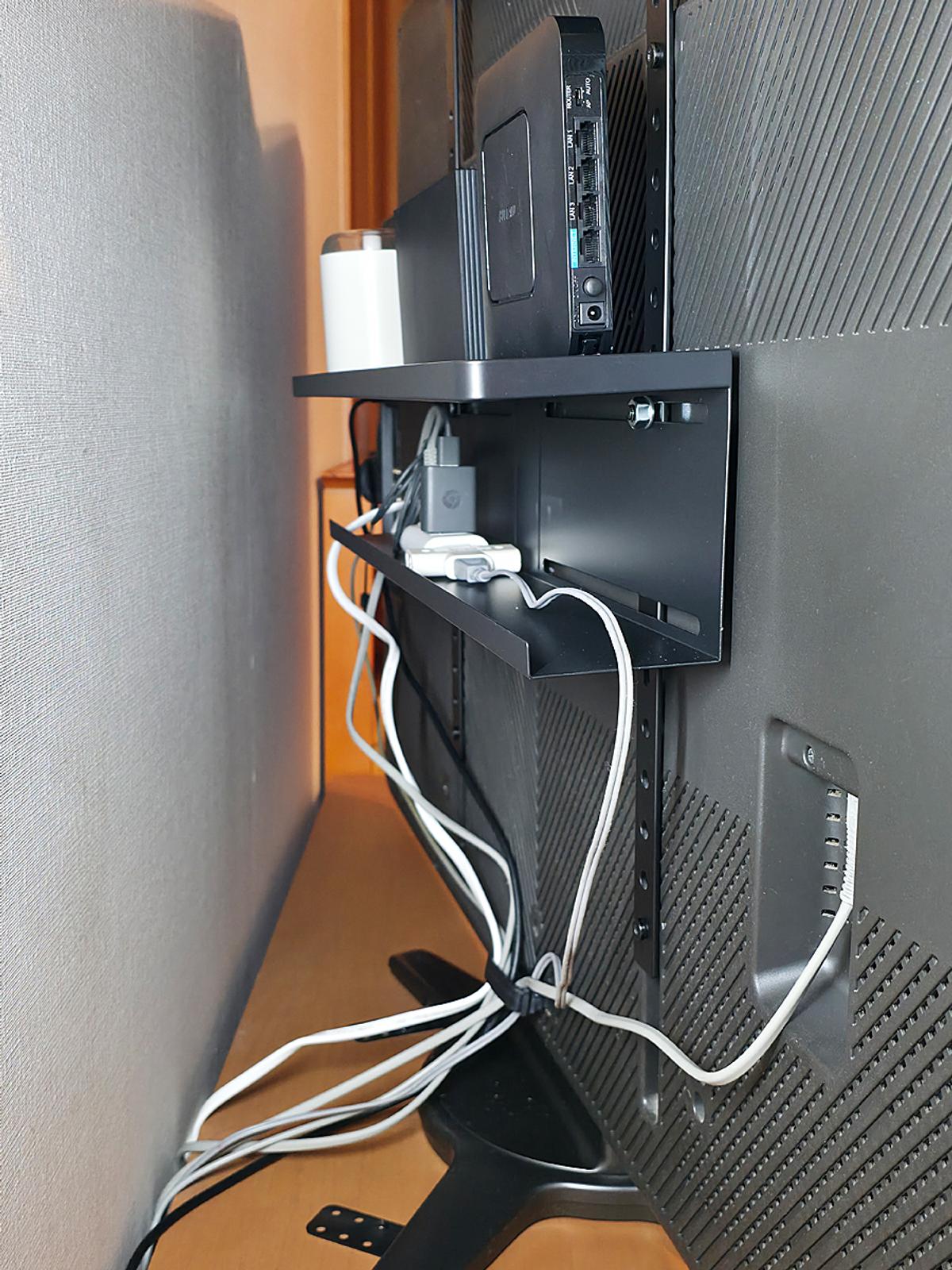 ・テレビ裏を有効活用。ルーターや外付けHDDをスマートに収納