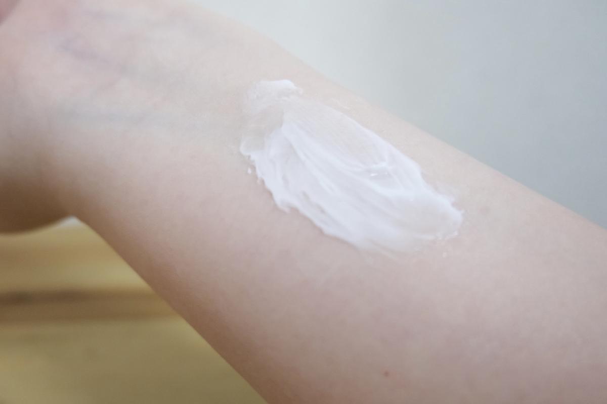 テクスチャは、見た目はこっくりとしたクリームなのに、肌にのばすとスルッと柔らかく変化するタイプ。