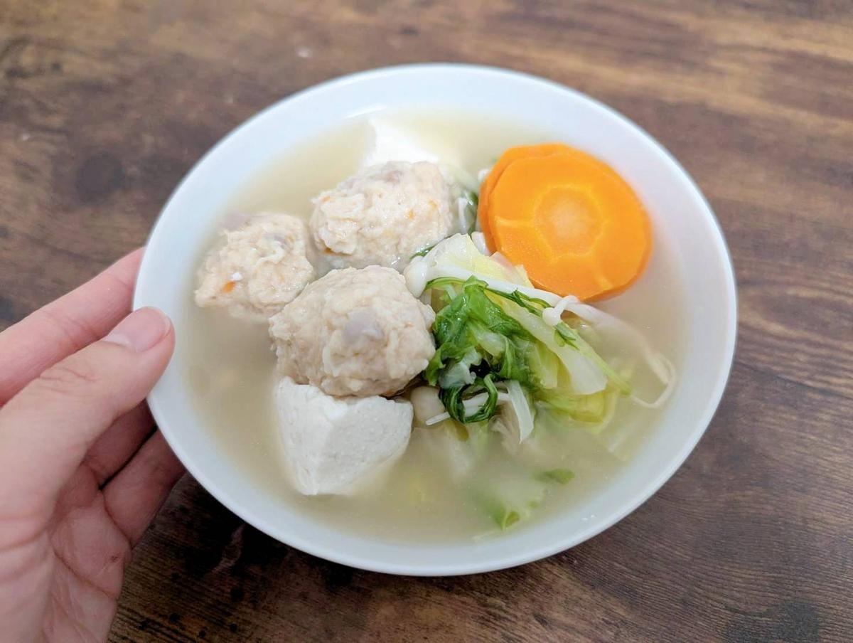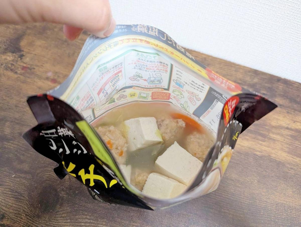 崩れちゃわないか心配だった豆腐、きれいなまま残っている……! かためのにんじんや冷凍肉団子は追加で加熱が必要かな? と思っていましたが、その必要はありませんでした。
