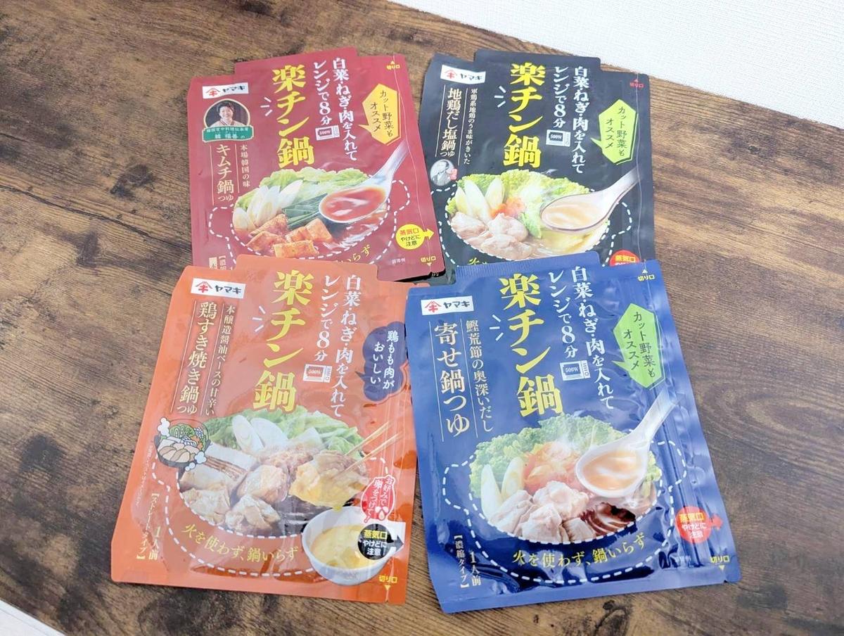 ほぼ同じ具材で、4種類の鍋ができてラクチン