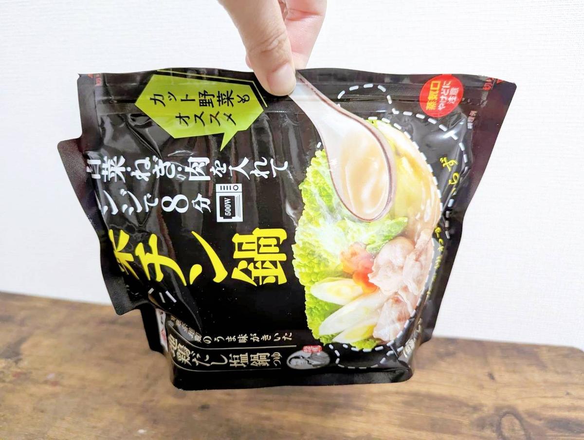 ヤマキ「楽チン鍋 地鶏だし塩鍋つゆ 50g」は、チャック付きの袋に入った鍋つゆです。好きな具材を入れて、電子レンジでチンするだけで鍋料理ができる優れもの。