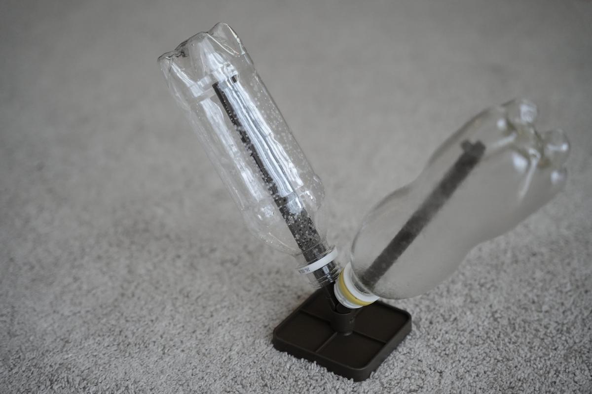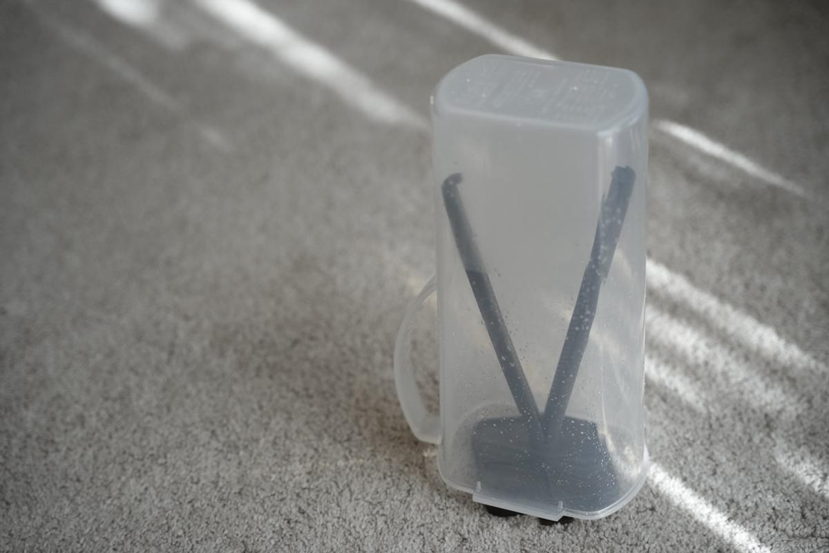 このアイテムはペットボトルを乾燥させるのにも使えるのですが、一部のペットボトルの口の内径と、棒の外径がほぼ同じで、差し込みにくいと感じることも。