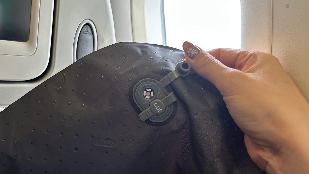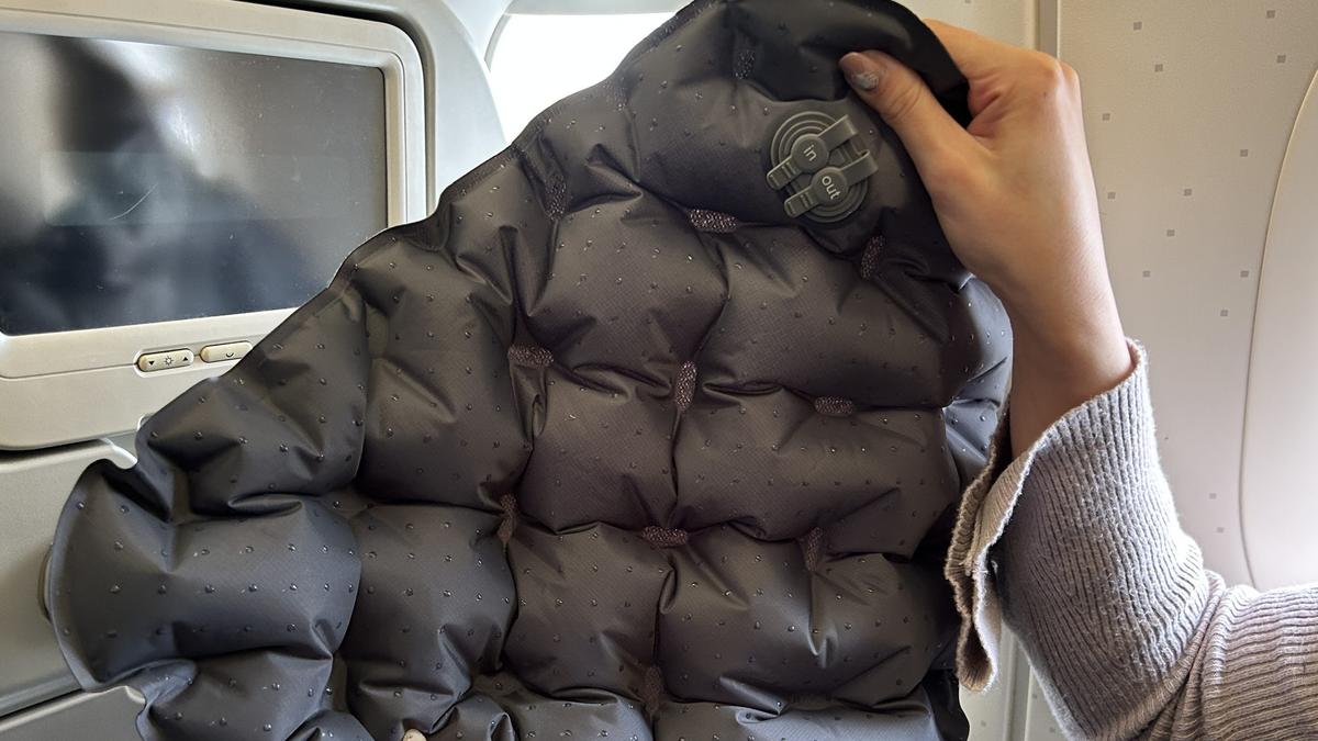 狭い座席でも周りを気にすることなくクッションを膨らませることができました。