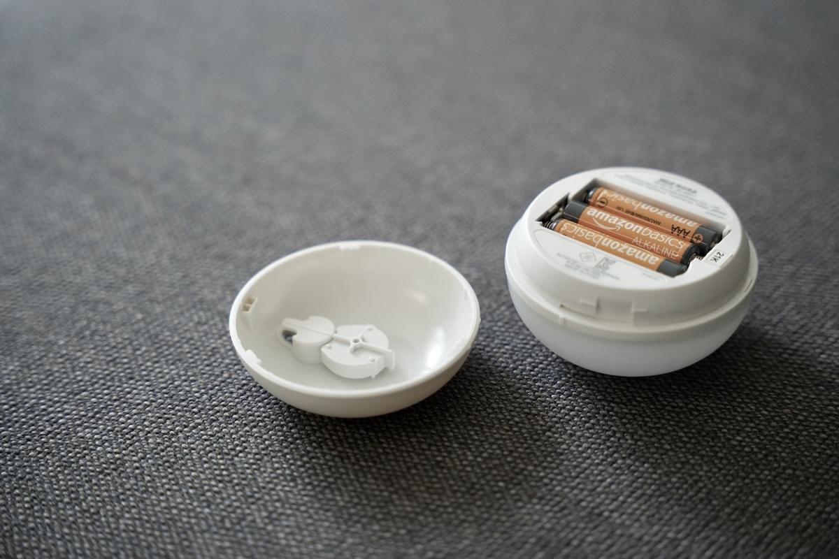 電池式なので、コンセントの場所に縛られずに置けるよさがある一方で、電池を交換する必要があります。