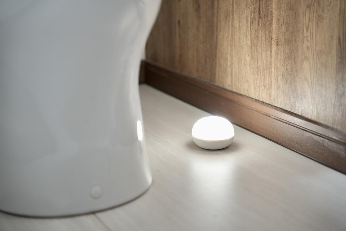もともとトイレに設置されているライトは、明るすぎるため寝起きの目には眩し過ぎてしまいます。しかし、このライトをトイレの影に置いて間接照明として使えば全然眩しくないので、とても助かるんです!