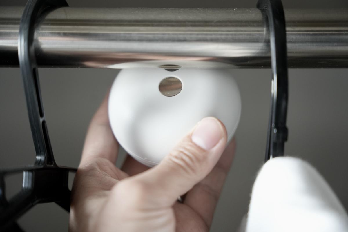 ハンガーレールに付けることもできるので、暗いクローゼットの中もパッと照らせます。