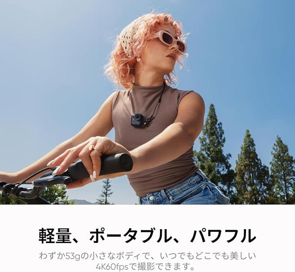 本体重量わずか53gという驚異の軽さを実現した「Insta360 GO Ultra」。ポケットにすっぽり収まるコンパクトサイズながら、4K60fpsの高画質動画撮影が可能です。
