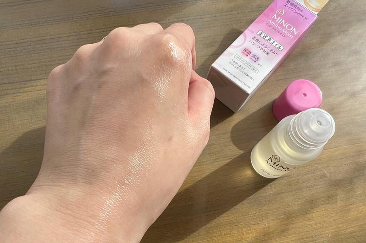 ドラッグストアで購入でき、比較的安価なミノンの「アミノモイスト エイジングケア オイル」。