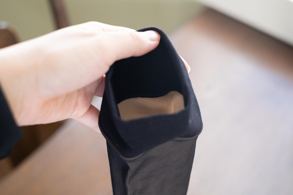 内側がベージュになっていて、薄いストッキングから自然に肌が透けているような色を演出してくれます。