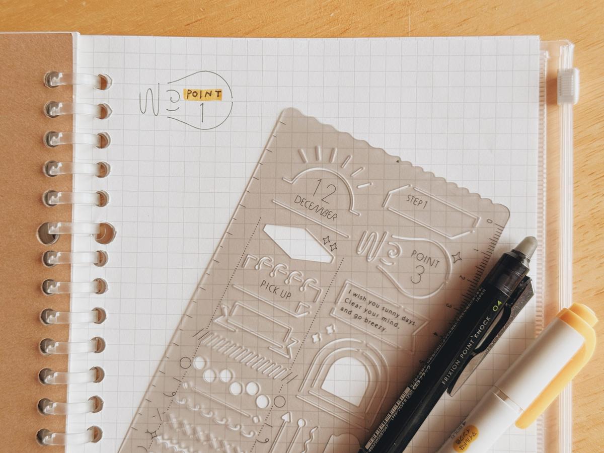 使い方はシンプルで、テンプレートを手帳の上に置いてペンでなぞるだけ。
