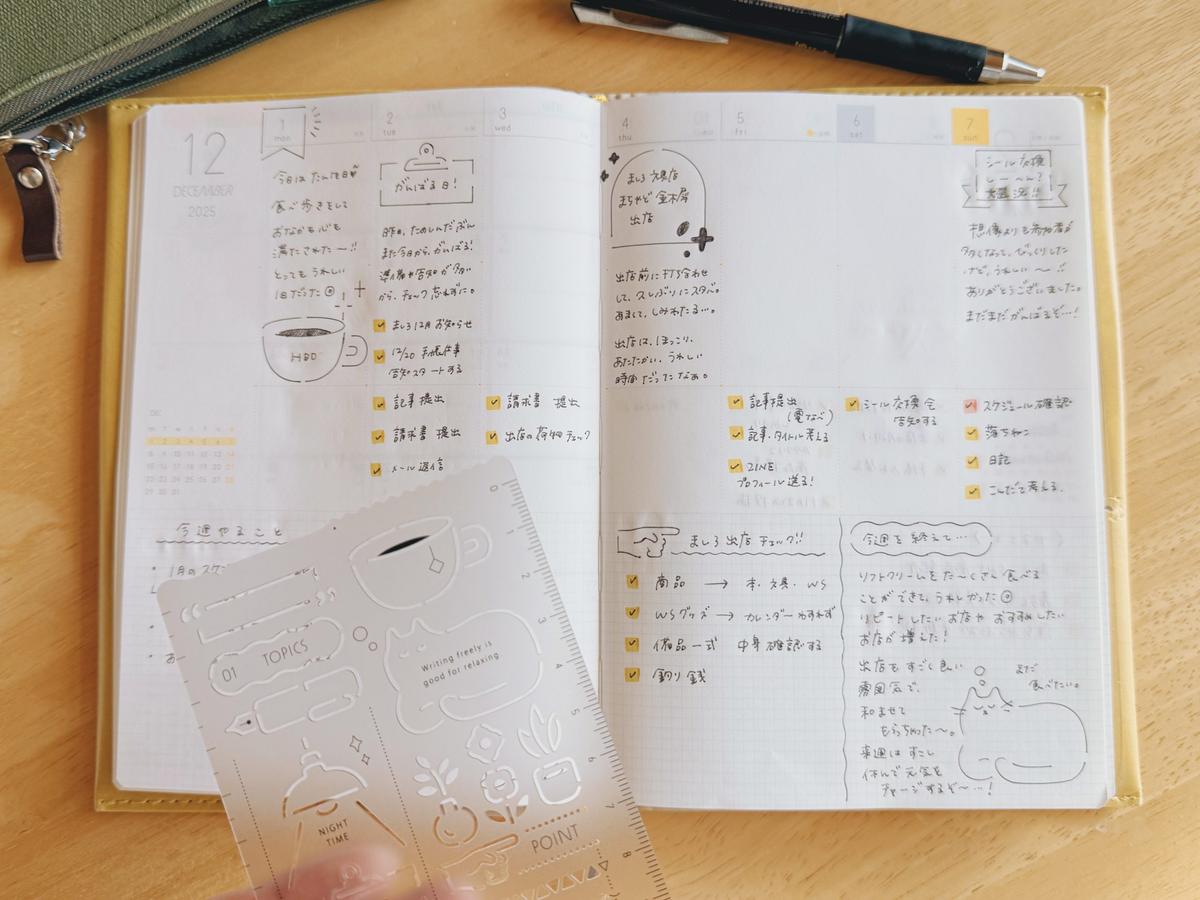 文字だけだったページも、テンプレートでワンポイントを足すだけで、開くたびにウキウキする手帳になってきました。