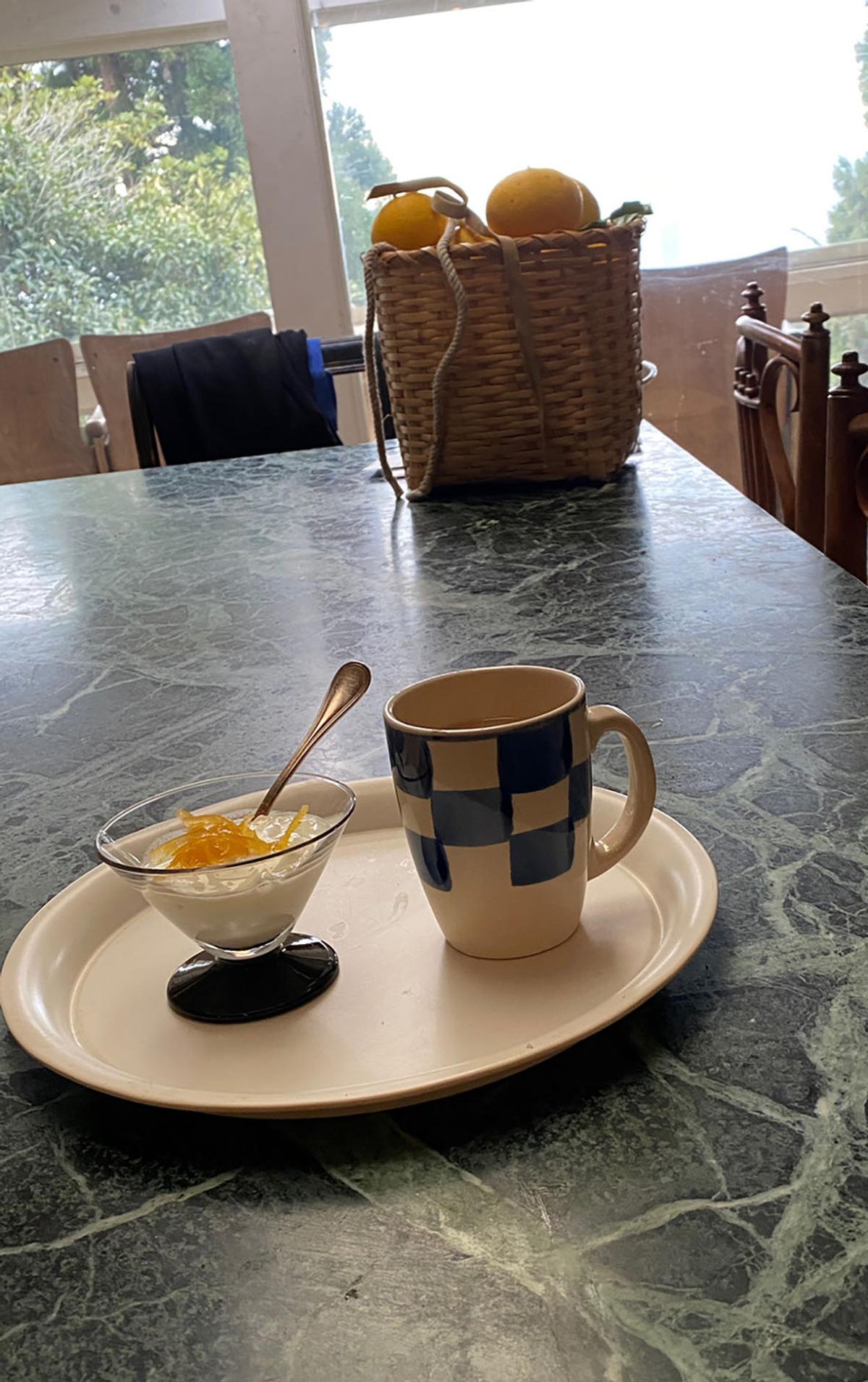 ごぼうの炊き込みご飯に焼いた鮭と素焼き海苔(全て保存してあったもの)、絹豆腐、三浦大根をヨーグルトと味噌を混ぜたもので漬けてみました(糠漬けとどっちが美味しいかなあ……)、だし巻き卵。椎茸の味噌汁。