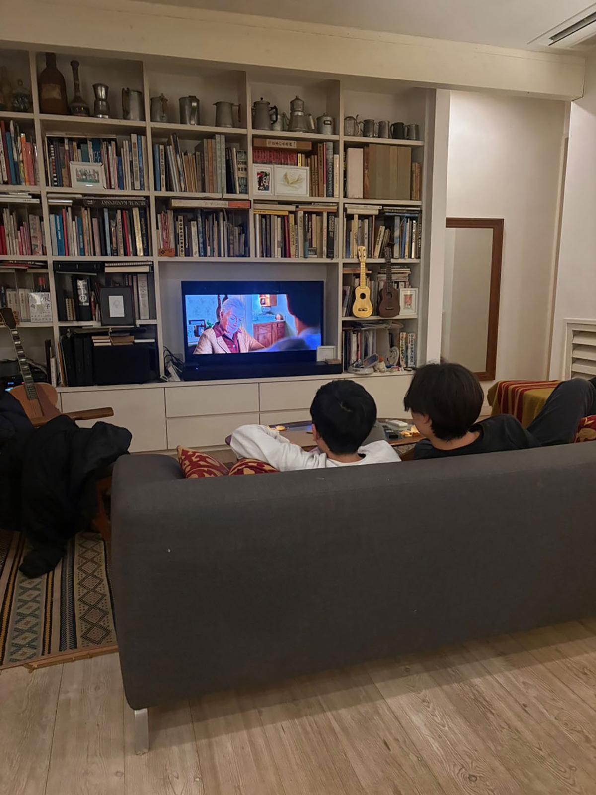 少年たちは満腹のお腹を抱えながら「スパイダーマン」の映画を見ていた。仲良しだなあ。