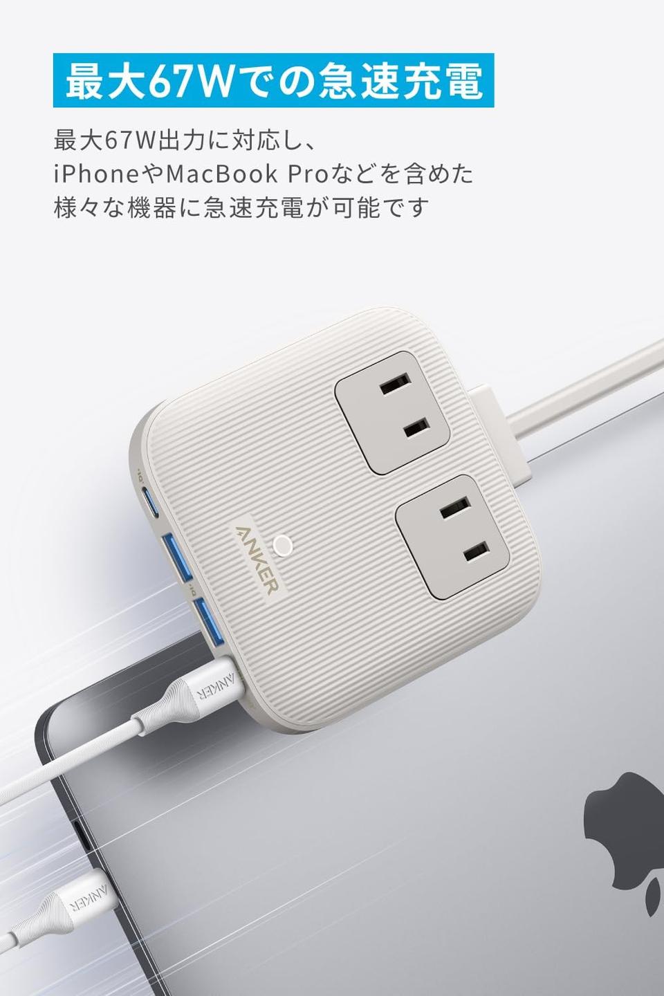 「Nano Charging Station (6-in-1, 67W)」の最大の特長は、合計最大67Wの高出力に対応している点です。