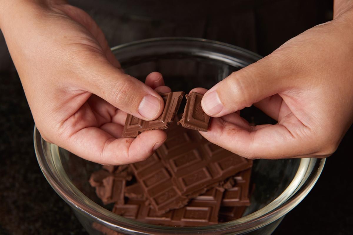 板チョコは溝にそって割れば、細かく砕かなくても大丈夫。