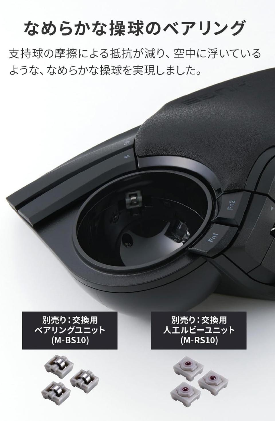 ベアリング支持ユニットにはミネベアミツミ製の高性能ベアリングを採用。トラックボールが滑らかに回転し、操作性が大幅に向上しています。
